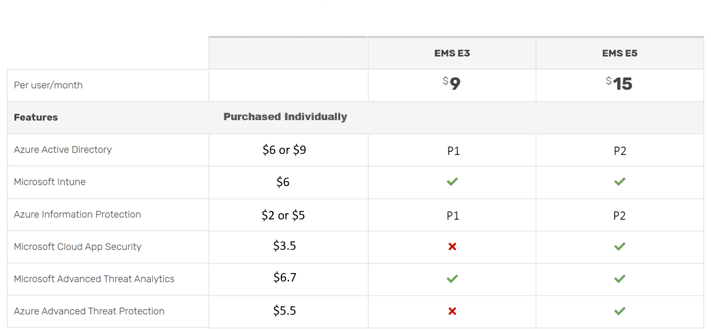 - EMS E5 can be purchased as a standalone product ($15 per user/month)
